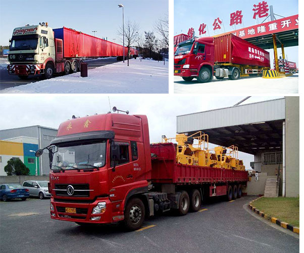 集裝箱運輸:即以集裝箱為盛裝器具,由專用汽車載運的運輸方式。